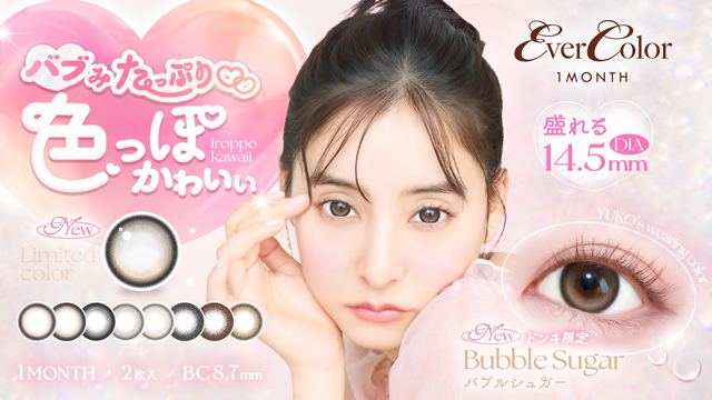 株式会社アイセイ(本社:大阪市東淀川区 代表:山下宏記)は、カラーコンタクトブランド『エバーカラーマンスリー』から「バブルシュガー」を12月4日(木)より全国のドン・キホーテ限定(※一部店舗を除く)で発売いたします。